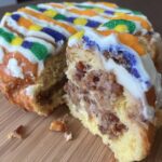 A festive and traditional Mardi Gras centerpiece, this King Cake features a tender, buttery brioche-style dough filled with a sweet mixture of cinnamon, pecans, and raisins. Finished with a simple glaze and iconic colored sugars, it brings the warmth and celebration of the season straight to your farmhouse kitchen.