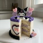 For a truly sharp aesthetic, consider using the techniques found in our vintage cake guide to master the piping required for Kuromi’s hood. If the cake feels dry, you can lightly brush the layers with a simple syrup (1:1 ratio of sugar and water) before frosting. This is a common test kitchen trick to maintain moisture over several days of display. You can also see more visual inspiration for these designs on this creative platform.