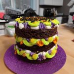 - Prepare a large batch of American buttercream; stack and fill the layers, then apply a crumb coat and chill for 30 minutes.